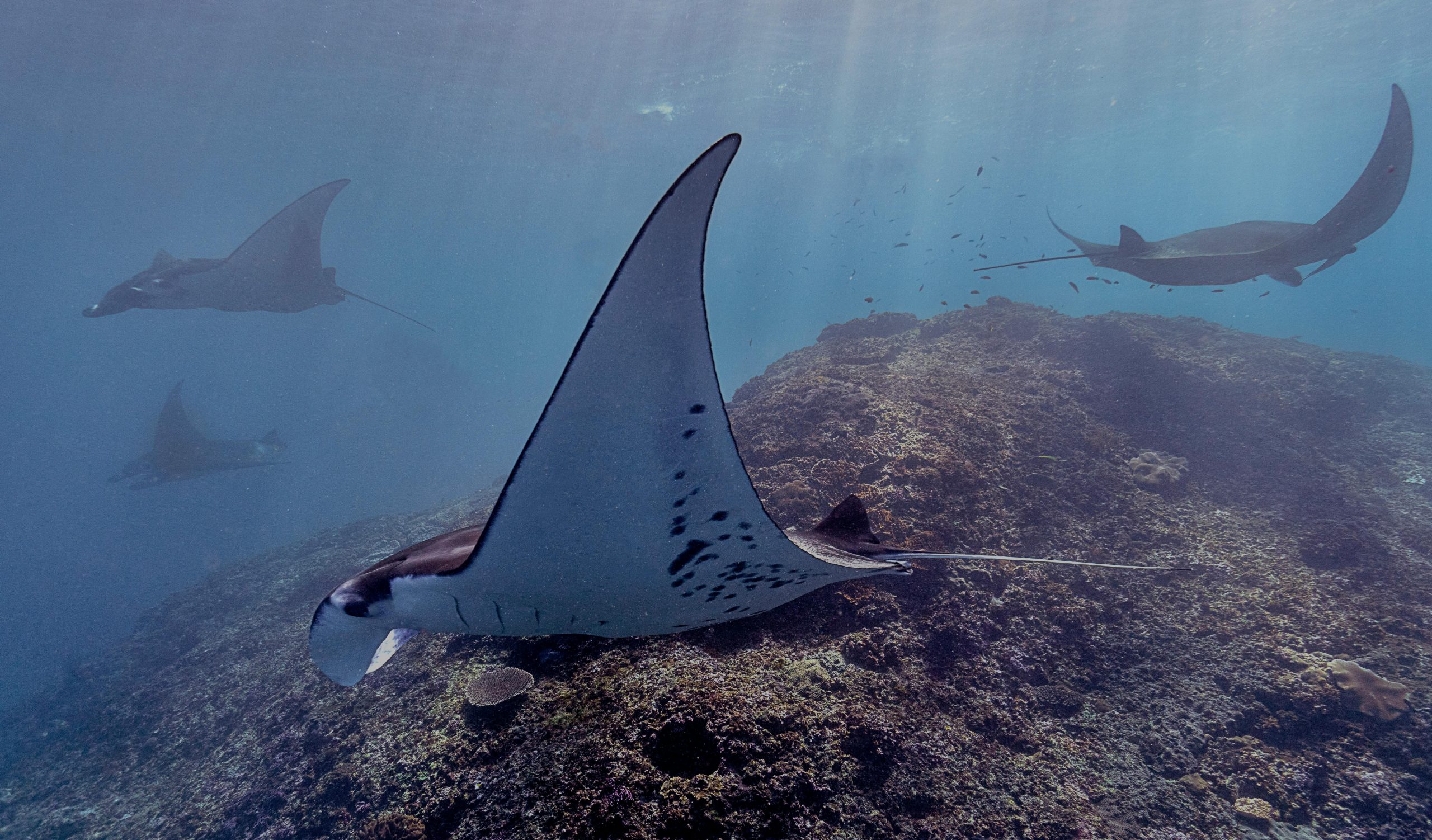 Located on the southern side of Nusa Penida, Manta Point is world-famous for its year-round population of graceful manta rays. This natural cleaning station attracts these gentle giants as cleaner wrasse and butterflyfish remove parasites from their wings — offering divers an awe-inspiring, up-close encounter in Bali’s open blue waters.