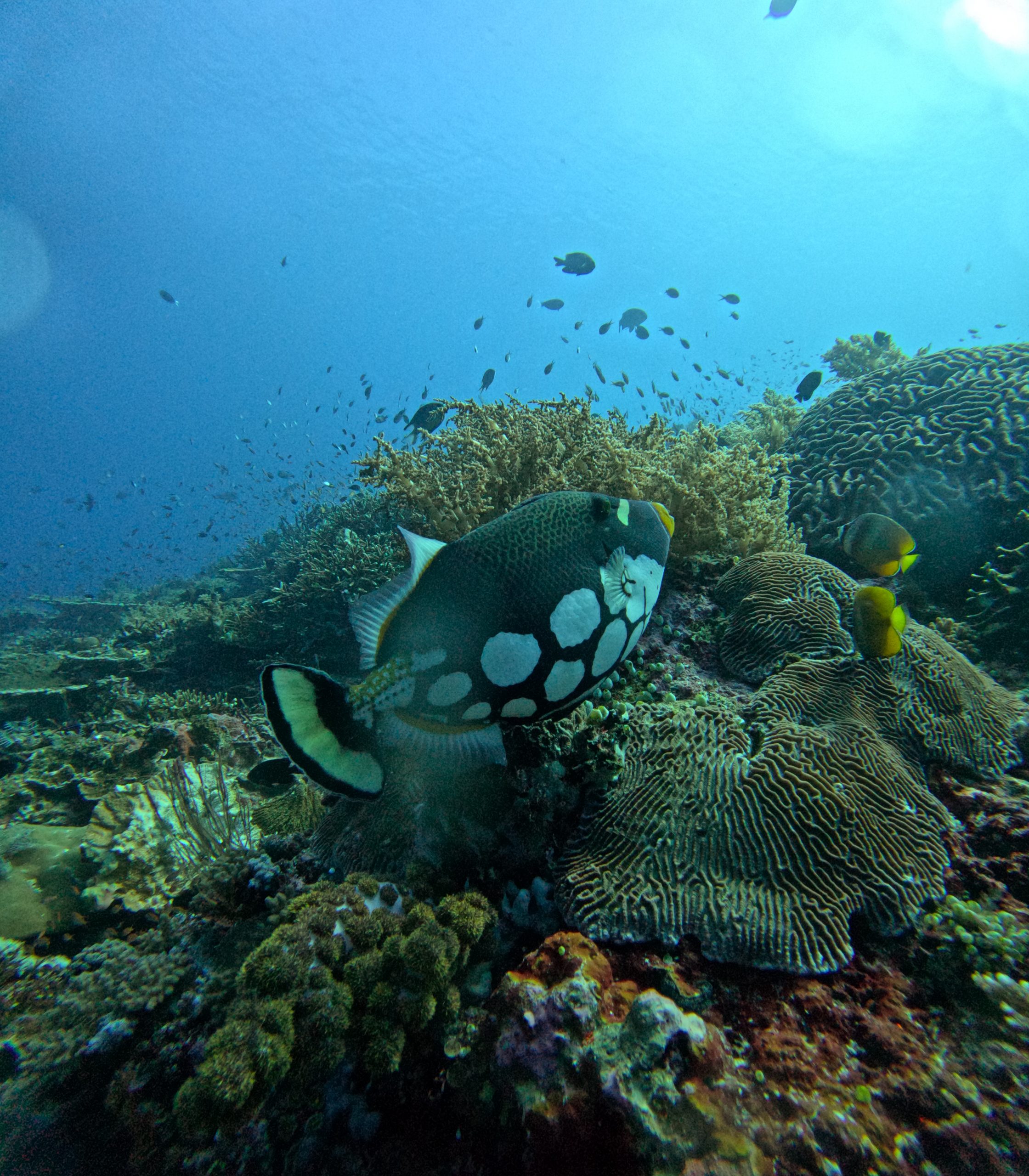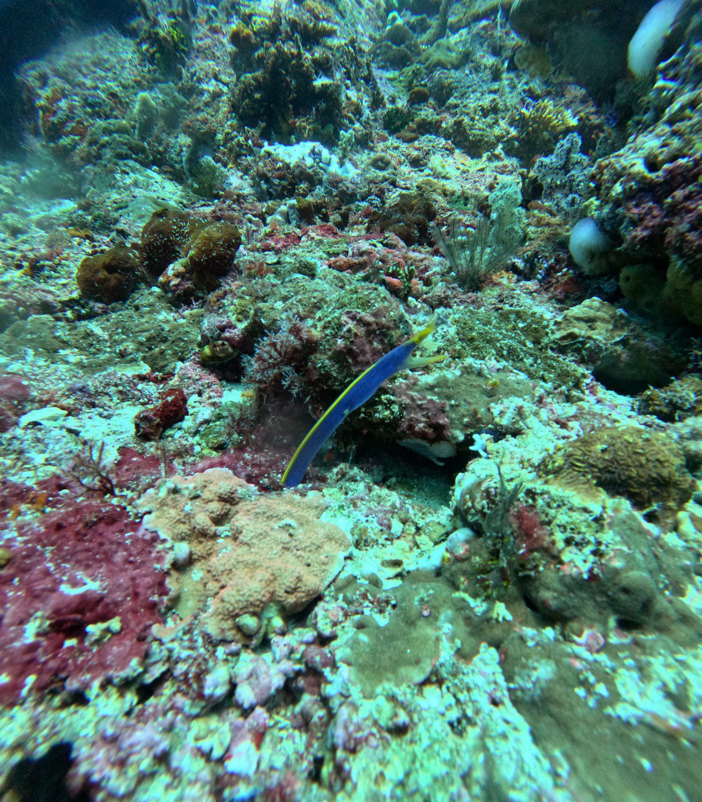 Diving at Blue Lagoon feels like stepping into a living aquarium. This vibrant site features gentle coral slopes on one side and a stunning wall on the other, teeming with an incredible variety of tropical reef fish. Perfect for both beginners and experienced divers, Blue Lagoon promises crystal-clear visibility, calm waters, and an unforgettable splash of color beneath the surface.